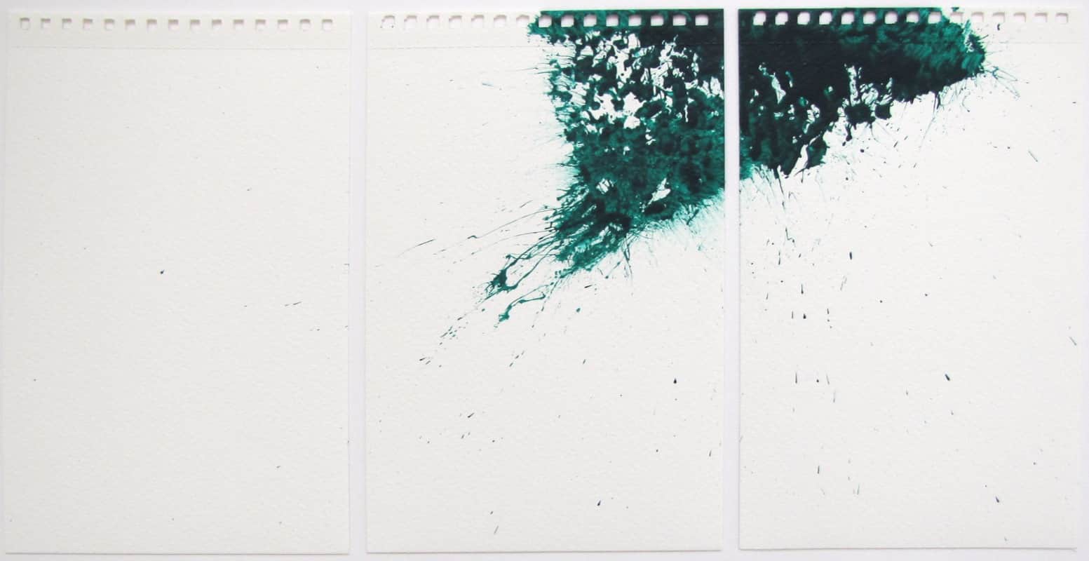 Leonardo #45, Acrylfarbe, Papier, dreiteilig je 13,5 𐄂 21 cm gerahmt 33 𐄂 54,5 cm (13/15)